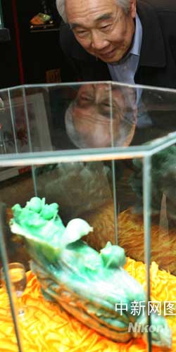 這座占地800余平方米的博物館集收藏、歷史、文化、休閑于一體。一樓的“翡翠展館”,可以讓人們在品味經(jīng)典西式咖啡的同時(shí),欣賞到不同的翡翠精品,25個(gè)展臺(tái)中聚集了百余件翡翠精品,其中一件重達(dá)12公斤色澤艷綠價(jià)值連城的“翡翠蟈蟈白菜”最為醒目,其質(zhì)地、造型和工藝均屬上乘。