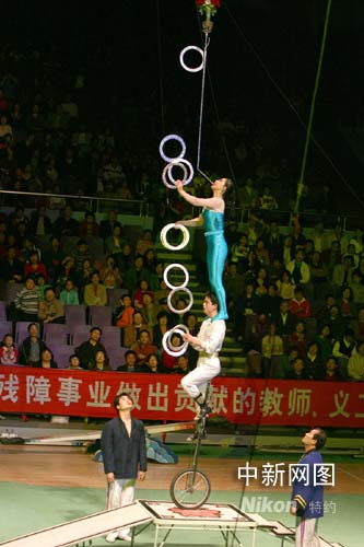 中新網(wǎng)上海四月二十七日電(華明) 一群“特殊”的孩子和熱心幫助他們的愛心人士,二十六晚在上海國際體操中心一起觀看朝鮮平壤國立雜技團帶來的精彩雜技表演,以慶賀中國少數(shù)民族文化藝術(shù)基金會(下簡稱中國民基會)助殘康復專項基金的誕生。