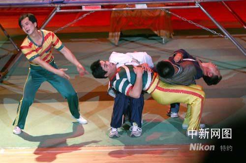 朝鮮平壤國立雜技團是中國人民的老朋友,曾經(jīng)多次來中國訪問演出,所到之處,無不受到當?shù)赜^眾的熱烈歡迎。他們的招牌節(jié)目《浪橋飛人》、《空中姑娘》、《大跳板》等,均獲得過摩納哥國際雜技比賽和中國吳橋國際雜技節(jié)的一等獎。完