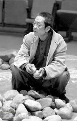 在演出現(xiàn)場(chǎng)記者看到,小劇場(chǎng)前排的座椅都已拆除,在舞臺(tái)下空出一塊正方形區(qū)域,幾百塊大小不一的鵝卵石堆放在演出區(qū)域內(nèi),1個(gè)多小時(shí)的演出就在這些石頭中進(jìn)行。盲人演員手持盲杖小心地邁出每一步,有了這些石頭做定位標(biāo)志,他們走臺(tái)時(shí)不再那么茫然。因座椅被拆除,每次演出只能容納200名觀眾。