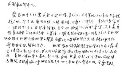 “汶川大地震”震驚海內外,也牽動著遠在香港的武俠泰斗金庸先生的心。金庸先生曾于2004年秋天來到四川,暢游成都、都江堰、青城山等地并做客本報,“汶川大地震”后,金庸先生于5月20日親自手書慰問信傳真到本報,委托本報向四川同胞表達慰問之情,并祝愿天災之后,四川各地更加繁榮興旺。