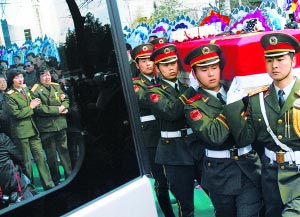 2007年4月2日,毛岸青追悼會(huì)結(jié)束后,被攙扶著的邵華目送靈柩離去。白繼開攝