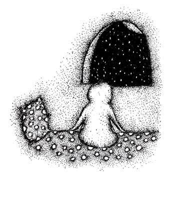 陳廣頤的黑白畫作,獨樹一幟,意境無窮,構(gòu)思奇巧,深邃深刻。最富有趣味的是她創(chuàng)造的書中小伊砣人物造型,堪稱一絕,一襲小袍子將全身包裹至嚴(yán),不設(shè)五官,但小人物神態(tài)、心態(tài)、情態(tài)和體態(tài)傳達(dá)得極其富有神韻,極其生動鮮活,流淌著作者無盡的浪漫和憂愁的詩意,甚至每一個轉(zhuǎn)過身去的小背影都讓人心生愛憐和留下無盡回味想象。就是這個經(jīng)典而可愛的小人物形象緊緊牽動著讀者的心,讓讀者和書中的小人物共同悲喜。雖掩藏包裹至深,但一個可愛浪漫、孤寂苦悶、追夢奮斗的留學(xué)海外的小人物跳躍在紙上,讓人愛不釋手。