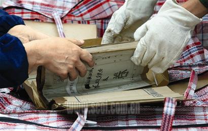 “這些受潮或遭肢解的檔案卷必須要經過除濕、蒸干、消毒、殺蟲、凍干等諸多保護環(huán)節(jié)。以蒸干為例,失去水分后的檔案會變得像一塊‘硬磚’,只能小心地一層層剝開,每揭一頁夾一層干燥紙來保護!斌w態(tài)有些發(fā)福的張新吃力地蹲在地上,仔細地清點裝有檔案的塑料編織袋,“今天的發(fā)掘應該說比較順利,一上午就運走了兩卡車,約有8000多卷,但不少檔案已受潮或碎裂,后期還要仔細修補和保存!睆埿抡f,他們事先準備了1000個編織袋,但到中午時分基本告罄,只得緊急調來1000個支援,“我們樂觀地估計,這次搶救性挖掘能救出五六萬卷文物檔案,基本保住了羌族‘血脈’!”