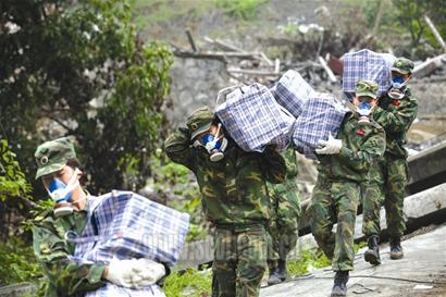 張新是四川省檔案局副局長,著名的檔案專家,他這次專門會同當地檔案部門對北川檔案館進行搶救性發(fā)掘!斑@次搶救性挖掘難度非常大,必須要掀開‘蓋’在廢墟上的這層樓面!薄巴ㄐ胚B、尖刀連、接力連……上!”隨著300多名官兵呈扇形“包圍”廢墟,戰(zhàn)士們從廢墟頂端一直排到地面,挖掘、傳遞、裝箱、登記,每一卷“出土”的檔案都經過了無數雙帶著體溫的手,小心翼翼地傳遞著。“找到了,這里有7箱比較完整的檔案!敝形1時許,幾名戰(zhàn)士從兩塊拱立的水泥板下刨出了一箱箱淺藍色檔案柜;焦急等候在一旁的檔案局工作人員趕緊迎上去,面帶喜色。隨著一卷卷記錄羌族政治、文化、經濟等的珍貴檔案“重見天日”,搶救現場的人們臉上露出了如釋重負的笑容。