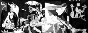 《格爾尼卡》是畢加索最著名的作品,描繪西班牙內(nèi)戰(zhàn)時(shí)期格爾尼卡被德軍轟炸機(jī)轟炸為平地的慘景。