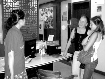 Sue介紹,在國外的一些旅游網(wǎng)站上,有專門的“四合院賓館”的匯總,到了那里,逐一尋找,通過看介紹和圖片先定下自己中意的幾個四合院,然后通過電話咨詢,了解前臺的英語水平和相關(guān)情況,最終確定入住的賓館。