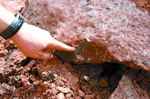嵌在紅砂頁(yè)巖中的“恐龍蛋”。