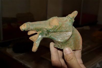 12日下午,記者來到武威市考古研究所文物庫房,文物工作者正在認(rèn)真地將每一件文物進行整理。記者注意到,除了“雞鴨成群”的壯觀場面外,還有兩只靜臥的大尾巴狗、狀如“牛魔王”的鎮(zhèn)獸,件件令人嘆為觀止,也令在場的文物考古專家贊嘆。