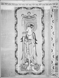 常嘉煌介紹,被盜的《藥師菩薩像》圖源自1907年法國(guó)人伯希和盜走的敦煌藏經(jīng)洞唐代絹畫,由李承仙先生復(fù)原放大繪制,壁畫高210厘米,寬80厘米。這是敦煌現(xiàn)代石窟的第一幅壁畫,也是李承仙生前留給敦煌的最后遺作。這幅壁畫是在裱糊在洞窟墻壁上的絲絹上完成的,被盜時(shí)被整體揭下。