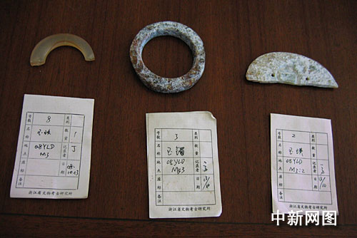 在杭州市余杭區(qū)經(jīng)濟開發(fā)區(qū)小林村附近燈籠山遺址,考古人員正在進行墓葬后續(xù)清理,浙江省文物考古研究所的工作人員介紹,這次出土的玉璜、玉鐲、玉玦都出自這個3號墓葬,同時出土的還有部分陶器。