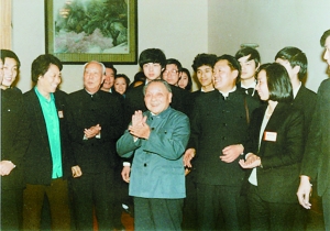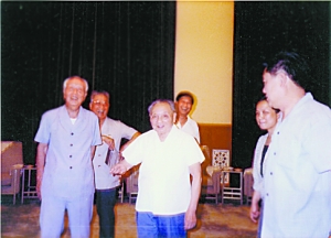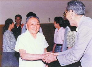 手忙腳亂的我,慌忙地按了兩下快門兒,一下閃光燈未亮,一下卻較好地拍下了小平、萬里同志與大家在一起的照片,并于次日見報。(圖一)
