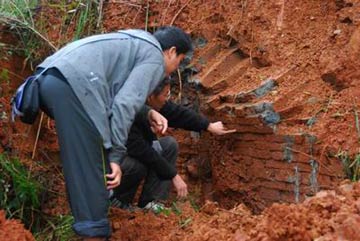 “里面好像藏著一座古墓!”侯永杰立即向有關部門報告了此事,當?shù)鼐胶芸熠s到并封鎖了現(xiàn)場。眉山市文管部門的專家現(xiàn)場勘察后發(fā)現(xiàn),這座古墓為雙磚室墓,內有石馬、武士石俑、陶俑等物。專家們推斷,該古墓為漢代古墓。