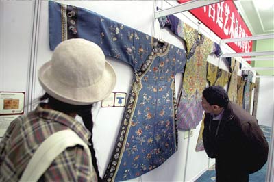 昨天(11月18日)下午,在2008宮廷藝術(shù)品高峰論壇上,包括兩件清宮龍袍、7件皇室成員服飾在內(nèi)的20件宮廷藝術(shù)品集體亮相,并接受了文物界專家的品評(píng)。下月6日,清宮18件皇帝龍袍將在北緯四十度大成國(guó)際拍賣(mài)會(huì)上拍賣(mài),一次拍賣(mài)這么多件龍袍在近年來(lái)拍賣(mài)會(huì)上極為罕見(jiàn)。
