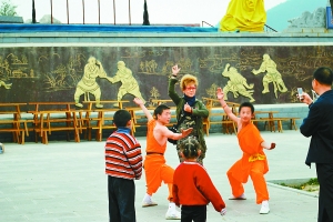雷師傅是登封的出租車司機(jī),開出租車已有六七年了。攀談時,這位土生土長的中年漢子告訴我們,每年,來自全國各地的孩子像潮水般到這里投師學(xué)藝,“好多外國人也到這里學(xué)習(xí)中國功夫!闭f這話時,雷師傅話語間透著自豪。