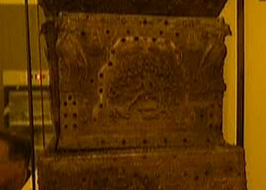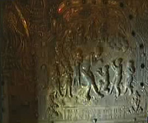 據(jù)現(xiàn)場專家介紹,這座精美的阿育王塔骨架是木質(zhì)的,外表是銀鎏金。由于浸泡了上千年,局部有開裂脫落,但已屬相當(dāng)完美。專家們有信心將這座寶塔恢復(fù)到千年前的情景。