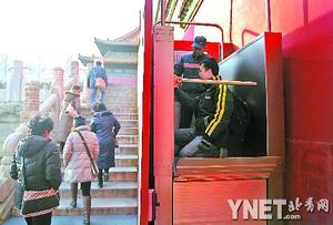 讓故宮的工作人員引以為豪的,是分別設(shè)在保和殿東側(cè)和午門(mén)西馬道上的兩臺(tái)垂直升降機(jī)。負(fù)責(zé)保和殿東側(cè)升降機(jī)使用的工作人員說(shuō),升降機(jī)的使用頻率很高,平均每天會(huì)有四五十位游客使用升降機(jī)。在奧運(yùn)會(huì)時(shí),最多的一天有超過(guò)200名游客使用升降機(jī)。