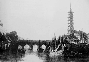 由西方畫家繪制的大報恩寺及琉璃塔圖。