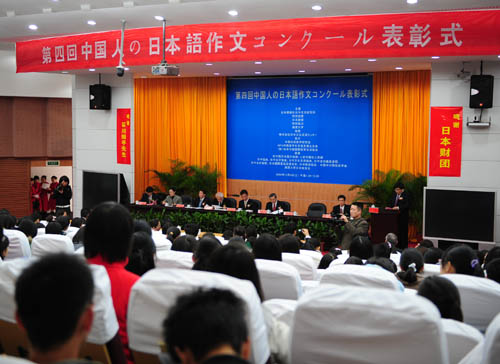 為紀念中日和平友好條約締結(jié)30周年和中國改革開放30周年,作為2008日中青少年交流年認定事業(yè)之一,由日本僑報社日中交流研究所主辦,日本駐華大使館、人民日報社人民網(wǎng)等支持,日本財團特別贊助的“第四屆中國人日語征文大賽”,于今年3月拉開帷幕,首次分設(shè)論文部門和紀實部門,同時首次設(shè)立日本大使獎。主題分別為“如何構(gòu)筑中日雙贏關(guān)系”、“我所知道的日本人”。