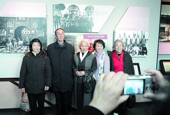 老人們不時(shí)拿出手中的相機(jī)在先輩們的照片前合影。突然一張?jiān)谘影才牡暮嫌拔舜蠹业哪抗,老人們(cè)谡掌蠈ふ抑约焊篙叺纳碛,并興奮地在老照片前合影留念!斑@是我伯父,大家過(guò)來(lái)合張影吧!敝芏鱽(lái)的侄女周秉德叫上劉少奇的女兒劉愛(ài)琴等人一起,“咔嚓”一聲留下了美好瞬間。隨后,在一張劉少奇與兒女們的合影中,劉愛(ài)琴一眼就認(rèn)出了當(dāng)年還是小姑娘的自己以及弟弟妹妹,幸福溢于言表。