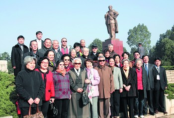 元?jiǎng)缀蟠肮ぷ魅藛T在劉少奇銅像廣場(chǎng)合影留念。