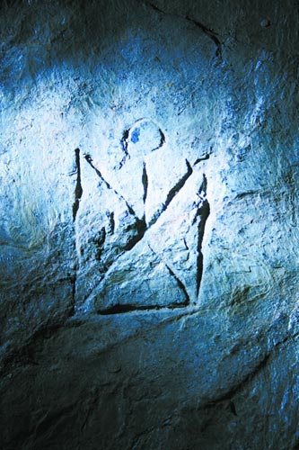 剛結(jié)束的考察中,專家對目前發(fā)現(xiàn)的3000多幅圖案中的約500幅進(jìn)行研究,將其分為巖畫和巖刻符號兩大類。幾幅可以辨認(rèn)的巖畫分別表達(dá)了人物、天、地的含義;巖刻符號,由于數(shù)量較多、內(nèi)容復(fù)雜,暫時(shí)按形態(tài)分作9類22式,它們多為洞穴狀刻符,有數(shù)量關(guān)系,且多為6或6的倍數(shù)。
