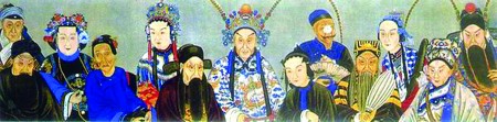 梅蘭芳收藏始于戲畫,藏品中最豐富、最有藝術(shù)價值的亦是戲畫。這些戲畫都是照扮演者的真容來描繪的,面貌神情準(zhǔn)確逼真。其中,以存留至今的晚清沈蓉圃繪《同光十三絕》尤為珍貴。這十三絕的美稱,代表著13位名伶,當(dāng)年每位都有一出拿手的名劇(上圖)。