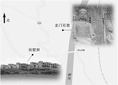 龍門石窟及在建別墅群示意圖。宋嵩制 圖