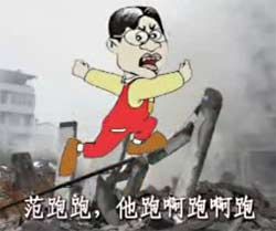 汶川大地震發(fā)生時(shí),四川省都江堰市光亞學(xué)校語(yǔ)文老師范美忠丟下學(xué)生一個(gè)人跑出了教室,因此被網(wǎng)友稱為大地震中“最無(wú)恥教師”,取名“范跑跑”。