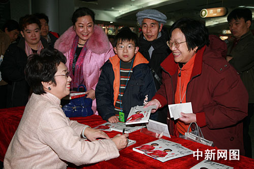 中新網(wǎng)1月19日電 1月17日上午10點(diǎn)30分,北京電子音像出版社在西單圖書大廈舉行《李玉芙——京劇唱腔專輯》簽售儀式。著名京劇表演藝術(shù)家、梅蘭芳親傳弟子、梅派名家李玉芙和著名話劇表演藝術(shù)家石維堅(jiān)出席了該儀式,F(xiàn)場聚集了眾多李玉芙的忠實(shí)觀眾,爭相與心目中的大師合影留念,氣氛十分熱烈。