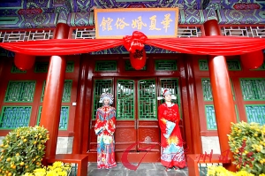 昨日,圓明新園內(nèi)華夏婚俗館正式開館,將向游客免費(fèi)開放,其中光各式結(jié)婚證、訂婚證就有一百多件。記者現(xiàn)場(chǎng)看到,我國(guó)歷史上發(fā)現(xiàn)最早的結(jié)婚證書是太平天國(guó)時(shí)期的婚書《合揮》的復(fù)印件。