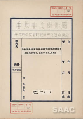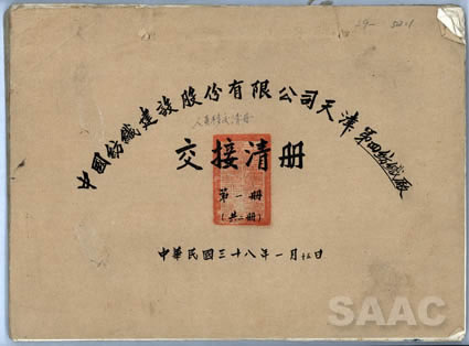 7.1949年1月—3月,天津市軍管會接管部工業(yè)處接管中國紡織建設股份有限公司天津第四、五紡織廠移交人員清冊,圖為清冊卷皮