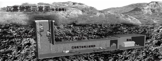 終于,一個17米深的圓洞打通了。陳冬下去勘查了一番,隨后,又要求這些河南工人繼續(xù)挖掘,但挖掘的方向改變了,陳冬要求挖一個橫向的通道。這樣,這個盜墓通道就成了“L”形。而這個橫向的通道可以直達墓門。