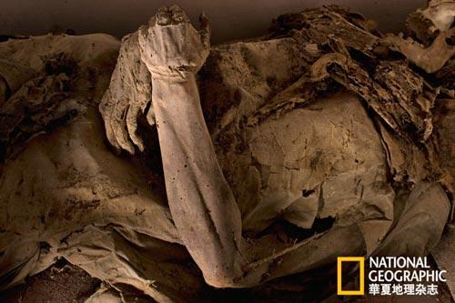 我在死者的隊(duì)列前走過(guò),說(shuō)不清心里究竟是什么滋味。在西方文化里,死人的尸體并不是能經(jīng)常得見(jiàn)的,失去生命的軀殼都用尸布包裹,藏于暗處。這些死者都籠罩著一種神秘氣息,從身上仍可窺見(jiàn)其生前的處世態(tài)度及信仰。我?guī)е环N病態(tài)的興致檢視這些尸體(原來(lái)死亡就是這樣的呀),意識(shí)到活人與死人之間的最大區(qū)別就是,你可以饒有興味地、近距離地、直勾勾地盯著死人看,活人可受不了被如此打量。然后我又想到,這里真該播放邁克爾·杰克遜的《顫栗》做背景音樂(lè),因?yàn)檫@些尸體看起來(lái)實(shí)在太像恐怖片里拙劣地拼接起來(lái)的僵尸,偉大的自然之力卻造就了類(lèi)似低級(jí)藝術(shù)品的效果,真是既滑稽又可悲。他們張著下頜,仿佛在無(wú)聲地號(hào)哭,漚爛的牙齒暴露在外,又像是帶著邪惡的微笑,讓人不寒而栗,空洞洞的眼窩毫無(wú)生氣,萎縮的顴骨和僵硬的關(guān)節(jié)上粘連著一片片硬化的皮膚。這些人大多數(shù)個(gè)頭比較小,手臂交叉著被鐵絲和釘子垂掛起來(lái)以保持直立,腦袋懶洋洋地搭在肩膀上,肢體竭力模仿生前的模樣,卻無(wú)可奈何地漸漸腐化崩潰。