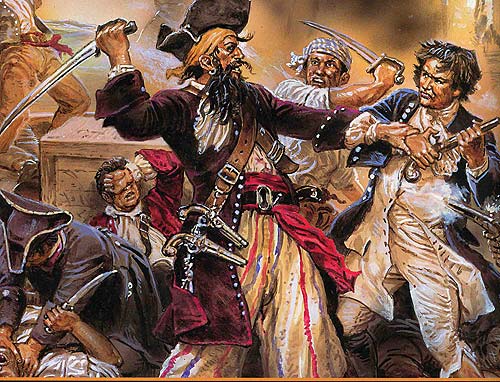 作為加勒比海盜的領(lǐng)軍人物之一,黑胡子見證了加勒比海盜的興起。黑胡子原名愛德華 蒂奇,1680年出生于英國,十幾歲時(shí)他便登上一條英國海盜船當(dāng)了一個(gè)小海盜,這條海盜船擁有英國政府頒發(fā)的私掠許可證,因此可以在英國政府庇護(hù)下攻擊和掠奪敵對國家的商船。成年后,愛德華留起了一臉濃密的黑胡子,有時(shí)還會編成小辮,由此他獲得了黑胡子的綽號。據(jù)說,他力大如牛、酒量過人,可以在一整天海戰(zhàn)后,豪飲一夜朗姆酒,然后精神百倍地再次投入廝殺;因?yàn)橄恿倚缘睦誓肪撇粔騽,他還常常要在酒里灑上一把火藥。
