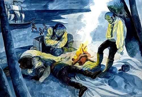 在大海盜愛德華 洛威爾的海盜旗上,鮮紅的人體骨架代替了白色的骷髏,似乎在昭示著,這位海盜的殘忍是罕有匹敵的。洛威爾曾截獲了一條從巴西返航的葡萄牙商船,葡萄牙船長將一萬多枚金幣裝在麻袋里,用繩索扎緊掛在舷窗外,期望能躲過這一劫。但這點(diǎn)小小的詭計(jì)沒能逃過海盜們銳利的眼睛,就在欣喜的海盜們將手伸向繩索的那一瞬,船長突然從腰間拔出匕首割斷了繩子,金幣落入了大海。氣急敗壞的洛威爾將這位船長的嘴唇割了下來,當(dāng)著所有俘虜?shù)拿嬖谟蜔羯峡窘沽,然后悍然命令手下?2名葡萄牙船員全部殺死。1724年,洛威爾的海盜船被英國海軍捕獲,惡貫滿盈的洛威爾在海戰(zhàn)中被打死,在審訊被俘的海盜時(shí),人們獲知了這段聳人聽聞的慘劇,于是,英國海軍法庭對(duì)洛威爾手下的十四名骨干處以絞刑。