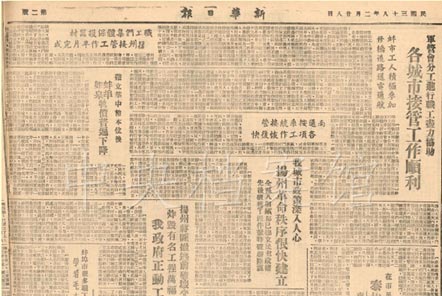 3.1949年2月28日,《新華日報(bào)》第二版關(guān)于各城市接管工作的報(bào)道