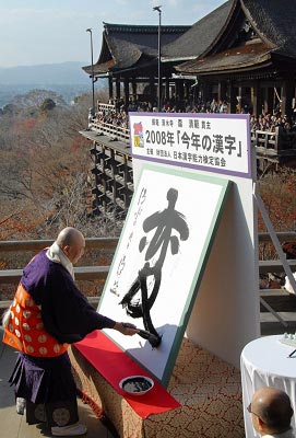 日本的漢字熱潮其實(shí)始于去年北京奧運(yùn)會開幕式上的漢字表演,尤其是活字版的出現(xiàn)令日本人十分驚嘆,并由此引發(fā)了一波日本的漢字熱。《朝日新聞》分析稱,隨著老齡化而不斷激增的老年人為了預(yù)防老年癡呆癥,開始熱衷于猜漢字詞語。隨著老齡化時(shí)代的到來,日本65歲以上老年癡呆癥患者已經(jīng)超過170萬人。而隨著大學(xué)和高中在入學(xué)考試中開始重視漢字,青年群體也加入到漢字熱潮中。目前,日本有492所大學(xué)和399所高中在入學(xué)考試中為漢字檢定考試合格者加分。