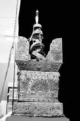 目前,南京方面也已委請(qǐng)宗教界人士選擇吉日開塔,暫未確定開塔時(shí)間。阿育王塔出函后,被安放在南京市博物館地下庫(kù)房?jī)?nèi)一個(gè)特制的密封玻璃罩內(nèi)進(jìn)行過(guò)渡性保護(hù)。“新家”保持了和出土地宮內(nèi)相同的溫度和濕度,但由于“塔王”埋藏地下千年,塔內(nèi)木托已經(jīng)部分變形,塔座邊角出現(xiàn)破損縫隙,鑲嵌塔身上的近100顆珠寶發(fā)生散落。由于金棺銀槨遇到水易氧化,骨質(zhì)文物易起霉變,文物專家更擔(dān)心的是出現(xiàn)進(jìn)一步損壞!安徽(qǐng)出金棺銀槨就無(wú)法知道它的密封狀況,所以唯一的辦法就是請(qǐng)出,這樣有利于文物保護(hù)!