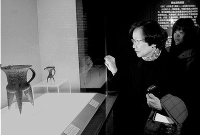 昨日,臺北客人來到上博,立即同上博方面進行了極其融洽的商談,由于相談甚歡,遲遲不能結(jié)束,原定的參觀時間不夠用了,所以上博方面只好請臺北客人進入地下的貴賓廳,從庫房里精選出館藏珍品進行展示。由于來訪的大多是臺灣的文物專家,因此客人們看得十分仔細,甚至帶著學(xué)者的眼光來探究。“周功鑫女士就是漆器方面的專家,我們也展示了漆器,周院長看得十分仔細。 ”上博接待人員透露,展示給臺北客人看的包括青銅器、瓷器、書畫等,共10多件重要藏品。
