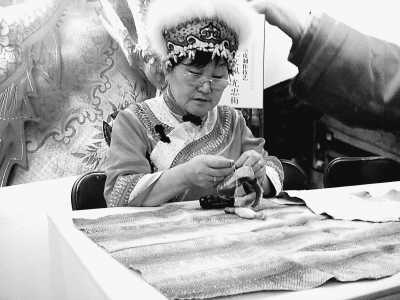 “鞋雖小,要做兩天呢。魚皮從剝下、去鱗、晾干、軋熟、裁剪縫制,工序多,很累人,要花幾天工夫的!闭f話時(shí),她手里的針仍然在來回穿梭。這里的她,是黑龍江同江市津街口鄉(xiāng)漁業(yè)村的漁民尤文鳳,魚皮服制作技藝的國(guó)家級(jí)代表性傳承人。中國(guó)非物質(zhì)文化遺產(chǎn)傳統(tǒng)技藝大展,目前正在北京舉行,大展期間,隨著人流走進(jìn)展館時(shí),我在她的展位前一再流連。