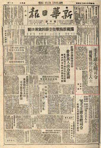 3.1949年2月5日,《新華日報》發(fā)表的毛主席朱總司令歡迎各民主人士的復電
