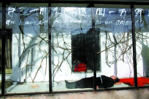 昨日下午798南門附近799藝術(shù)空間櫥窗內(nèi),藝術(shù)家郝光在此搭起了帳篷,并移居于此。這個(gè)被郝光命名為“退一萬(wàn)年櫥闊天空”的行為藝術(shù),是藝術(shù)家維權(quán)事件的進(jìn)一步升級(jí),郝光想借此表示對(duì)798物業(yè)的抗議。對(duì)此,798藝術(shù)區(qū)建設(shè)管理辦公室主任陳勇利表示,郝光與物業(yè)的糾紛屬于經(jīng)濟(jì)合同糾紛,物業(yè)方七星集團(tuán)已經(jīng)起訴至法院,屆時(shí)會(huì)通過(guò)法律來(lái)裁決。