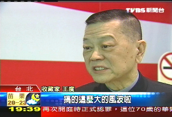 TVBS報(bào)道稱,圓明園12生肖的銅像,至今還有5個(gè)下落不明,現(xiàn)在傳出其中的龍首,居然是在臺(tái)灣收藏家手中。收藏家王度說:“他(龍首收藏者)也是收藏家也是一個(gè)商人,1988年到1990年這個(gè)時(shí)候(買入),就是要看這個(gè)兔首跟這個(gè),怎么樣以后他再做決定嘛,結(jié)果沒想到整個(gè)事情,演變成這個(gè)樣子!