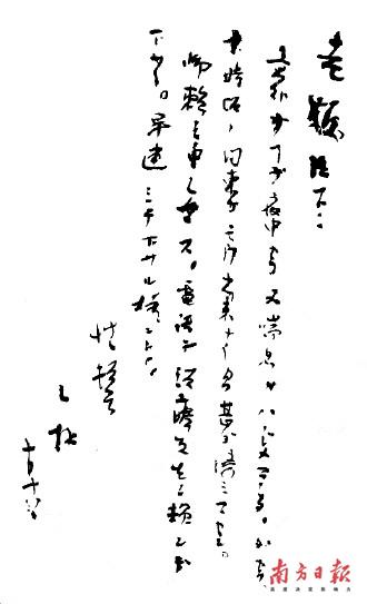 最令人關注的是,展覽中還展出了魯迅寫于1936年10月18日凌晨的絕筆信(復制品),這封信寫給好友內(nèi)山完造,讓內(nèi)山幫忙請醫(yī)生前來診治。信中用日文寫道:“老板幾下:沒想到半夜又喘起來。因此,十點鐘的約會去不成了,很抱歉。拜托你給須藤先生掛個電話,請他速來看一下。草草頓首L拜 十月十八日!庇浾呖吹,信上字跡很難分辨,筆力不深、草草書寫,可以想見當時魯迅身體已極度虛弱。寫完這封信的次日,魯迅先生就與世長辭了。