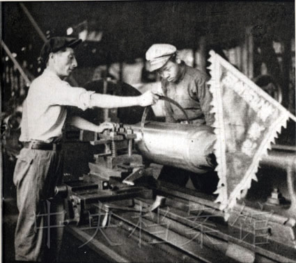 7.生產(chǎn)競賽運動的新紀(jì)錄模范——重機廠車工黃秀山在檢查機床