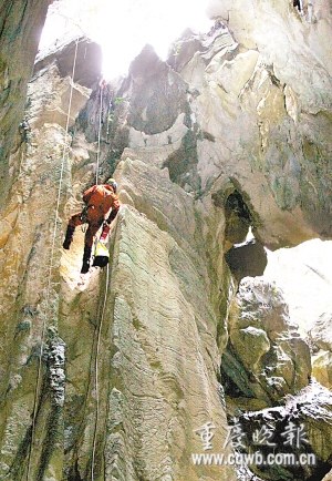 長壽葛蘭鎮(zhèn)塘壩村1組有一神秘洞穴,因村民曾在里面發(fā)現(xiàn)白骨,一直是當(dāng)?shù)乜植拦适碌脑搭^。前日,重慶市洞穴探險隊受村民之邀,進(jìn)洞揭開了這一“鬼洞”的神秘面紗。