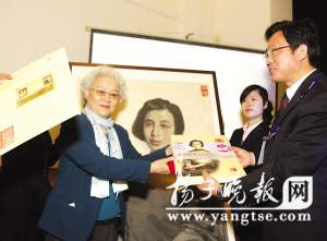 儀式結(jié)束后,烈士家屬們共同來到雨花臺烈士紀(jì)念館參加座談會,參加活動的烈士家屬中,有來自北京的劉愛琴老人。她是共和國主席劉少奇的女兒,她的母親就是長眠在雨花臺的何寶珍烈士。昨日,她將母親的一幅巨型畫像捐贈給了雨花臺。