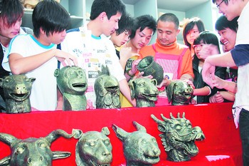前段時(shí)間,法國(guó)佳士得拍賣行拍賣圓明園流失文物鼠首和兔首銅像,此事經(jīng)媒體報(bào)道后在全國(guó)引起巨大反響,也激起了長(zhǎng)沙師范學(xué)校師生的憤怒。“當(dāng)時(shí)關(guān)于十二生肖銅像的話題很熱,我覺(jué)得若是仿制出十二生肖銅像,豈不是對(duì)學(xué)生進(jìn)行愛(ài)國(guó)主義教育的好素材?”仿銅十二生肖獸首制作者的指導(dǎo)老師錢正財(cái)告訴記者。錢老師將這個(gè)想法跟自己的學(xué)生們一說(shuō),大家都很感興趣。于是他從所教的學(xué)生中確定12人,每人負(fù)責(zé)一個(gè)仿銅獸首的制作。