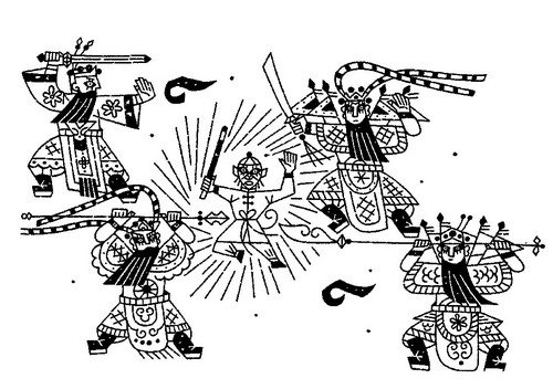 這些,只要看看他的《美猴王》插圖系列,就十分清楚。該系列作于上世紀(jì)50年代末60年代初期,當(dāng)時(shí),在縝密的研究準(zhǔn)備之后,斯科納創(chuàng)作了80幅水墨章首尾插圖和24幅全頁(yè)彩色插圖,簡(jiǎn)樸的水墨畫(huà)順合故事的發(fā)展,而彩色插圖則對(duì)文本進(jìn)行了繪畫(huà)藝術(shù)的改編。斯科納為此研究出專(zhuān)門(mén)的很復(fù)雜的技巧,采用多種創(chuàng)作方法和顏料,以表現(xiàn)出故事的景象和意義。為了達(dá)到最好的藝術(shù)效果,他經(jīng)常把空間劃分為幾個(gè)部分,由此反映幻想內(nèi)容與精密藝術(shù)描寫(xiě)的對(duì)比。除此之外,斯科納的其他繪畫(huà)元素,如中國(guó)的佛像、飛天、天兵天將、孔子、孟子、楚霸王、司馬遷等等,也循此嘗試慢慢展開(kāi)。幸運(yùn)的是,本畫(huà)展集中展示了茲德涅克·斯科納教授在中國(guó)創(chuàng)作的這批藝術(shù)珍品。